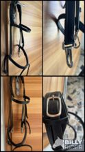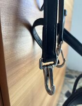 Neuwertiges Zaumzeug von Dyon. Passt leider meinem Pferd nicht. Praktisch zum Einhängen von der Trense. Gut gepolstertes Genickstück.