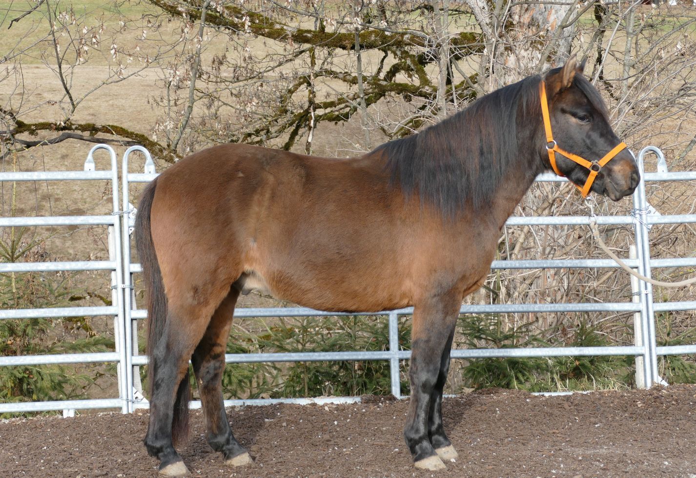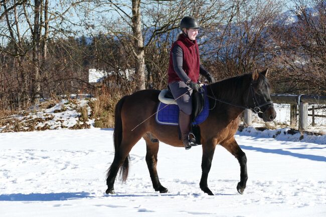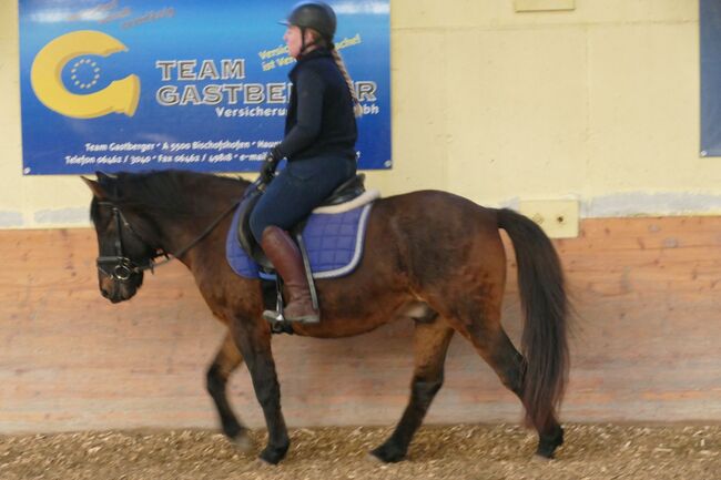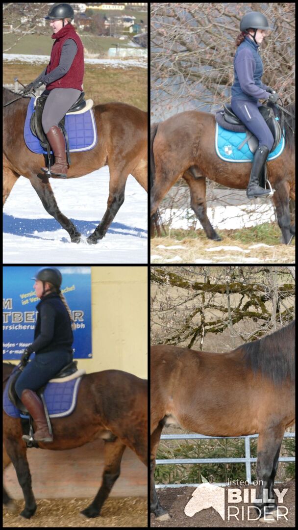 Huzule Wallach 6j. Dunkelbraunfalbe Stm. 143cm. rahmiger, kompakter, hübscher Typ mit guter Rittigkeit, geritten und gefahren, sehr willig, mutig und unkompliziert beim Reiten, gehorsam im Umgang; Ein Traumpartner für die Zukunft, der seine Bezugspersonen sucht!schmiede u verladefromm, in der Herde verträglich, für Offenstall geeignet