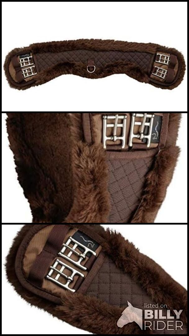 Equinate Sattelgurte zeichnen sich durch einen besonders hohen Tragekomfort und ihre individuellen Materialeigenschaften aus. Sie werden grundsätzlich mit 100% rostfreien Beschlägen ausgestattet. Mondgurte verlagern bedingt durch ihren speziellen Schnitt den Gurtverlauf nach hinten, dadurch resultiert eine bessere Druckverteilung und maximale Ellbogenfreiheit. Davon profitieren besonders Pferde mit der Neigung zu Scheuerstellen im Ellbogenbereich. Häufig liegen normale Kurzgurte bei diesen Pferden zu weit vorn, ein Mondgurt gleicht dies aus und verschafft mehr Bewegungsfreiraum im Bereich der Vorhand. Breiter Schnitt für optimale Druckverteilung Echtes Lammfell mit einer Wollhöhe von ca. 30 mm Strupfenlaschen Rollenschnallen Waschbar bei 30°C Besonders anschmiegsam Weich gepolstert Mit Vorderzeugring aus Edelstahl Steppstoff aus Baumwolle und Polyester