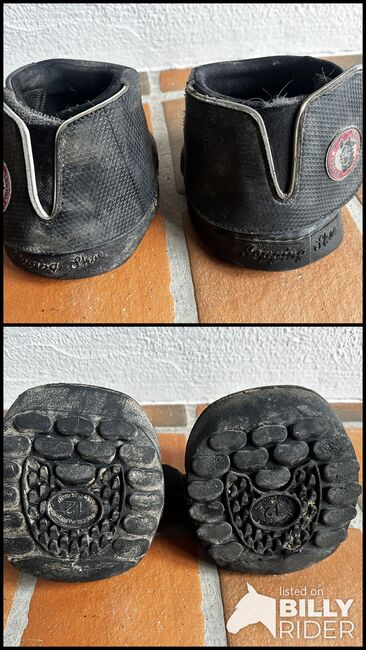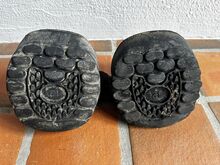 Die Schuhe sind gut getragen, jedoch noch nicht löchrig. Spikes könnten z.B. gut daran befestigt werden als Winderhufschuh!