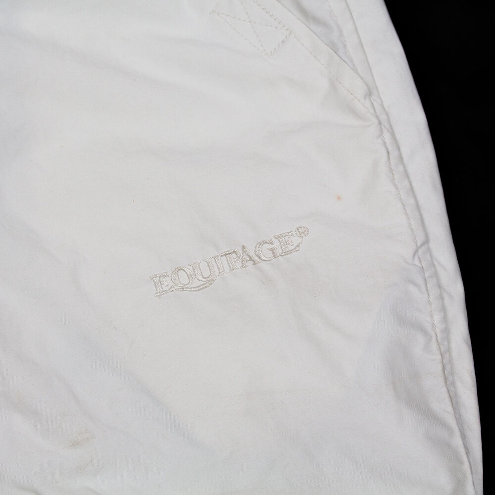 Die Equipage Regenhose ist perfekt für nasse Turniertage. Die praktische Überziehhose hat strapazierfähige Gummizügen an der Taille und den Beinabschlüssen. Sie ist aus Nylon und ist 3/4 lang. Die wasserdichte Hose hat Zweiwege Reißverschlüsse an der Seite für einfaches An- und Ausziehen. Die Hose hat Gebrauchsspuren wie leichte Verfärbungen und kleine Flecken ist aber generell in einem guten Zustand. Zum Angebot des Anbieterslaunch