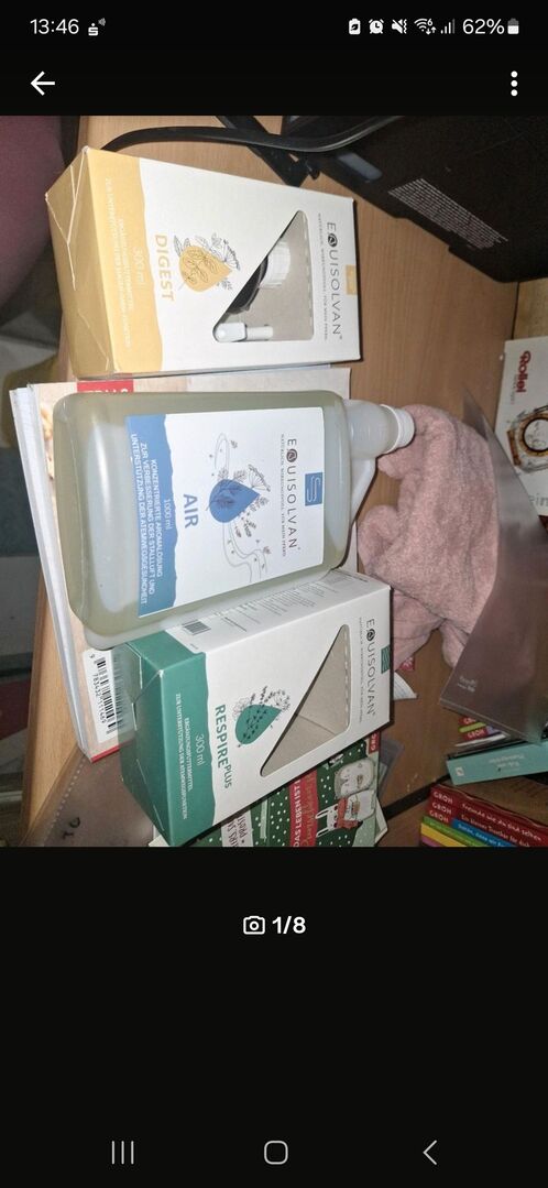 Hallo ich verkaufe folgende Sachen, da ich die leider aufgrund abgabe des Pferdes nicht mehr brauche. Alles ungeöffnet. Originalpreis Respire plus 54.90 Euro Equisolvan Air 64.90 euro Equisolvan Digest 55.99 euro Ich habe kein Preis drin (die 50 Euro sind einfach reingeschrieben) da man mir seriöse preisvorschläge machen kann. Da ich Studentin bin, versuche ich aber so gut es geht den Preis hoffentlich wieder rauszubekommen. Versand bitte nur wenn alles 3 genommen wird. Sonst kann auch nur 1 oder 2 genommen werden.