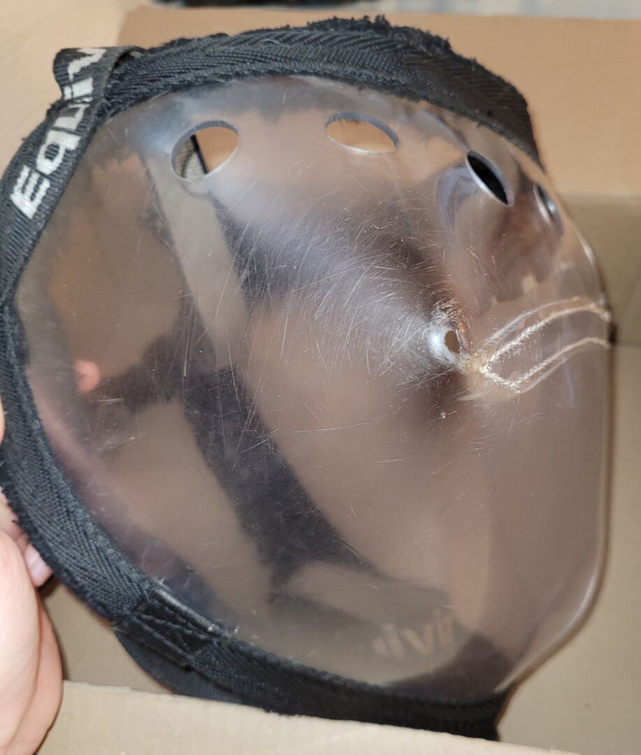- gebrauchte, gut erhaltene Maske - hat zwei kleine Risse, welche die Funktion nicht einschränken - für therapeutische Zwecke - z.B bei Periodischer Augenentzündung, nach OP's etc - die Striemen wurden gekürzt - die Maske wurde per Hand gesäubert - Größe: FULL (passt auch einer COB Größe) - dazu gibt es eine neue, passende Fliegenmaske - hoher NP