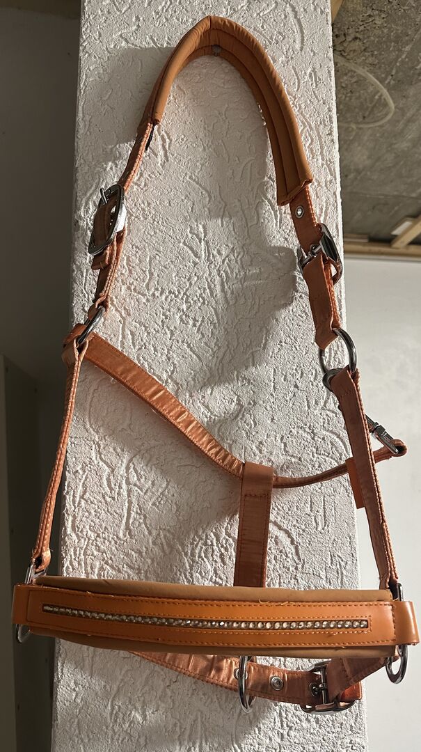 Und bei dem Orangen Halfter mit Steinen vorne ist kein Strick leider vorhanden.