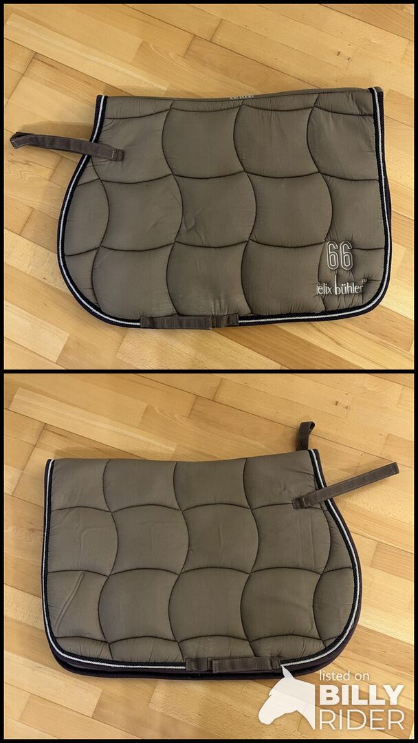 Ich verkaufe eine gerne genutzte Schabracke von Felix Bühler in einem Super schönen Hellen Beige mit einer Blauen und einer weißen Kordel. Zusätzlich ist auf der Einen Seite ein kleines Logo von Felix Bühler und die Zahl 66. Sehr Guter Zustand. Die Schabracke ist etwas dicker und liegt dadurch super auf dem Pferd und wirkt zusätzlich als Polsterung.