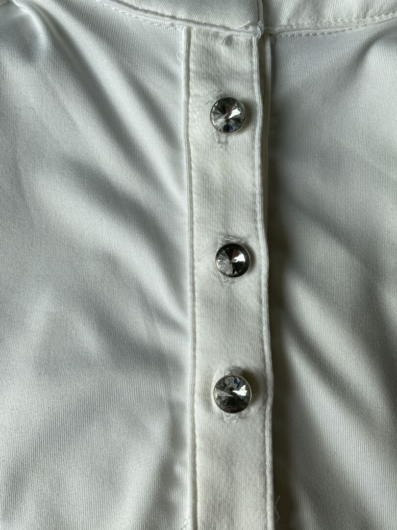 Ich verkaufe ein Neues Turnier Shirt in Weiß. Wurde nie getragen und ist in einem Super Zustand. Die Knöpfe sehen durch die Steinchen sehr Edel aus. An den Ärmeln ist das Shirt aus Spitzen-Stoff.