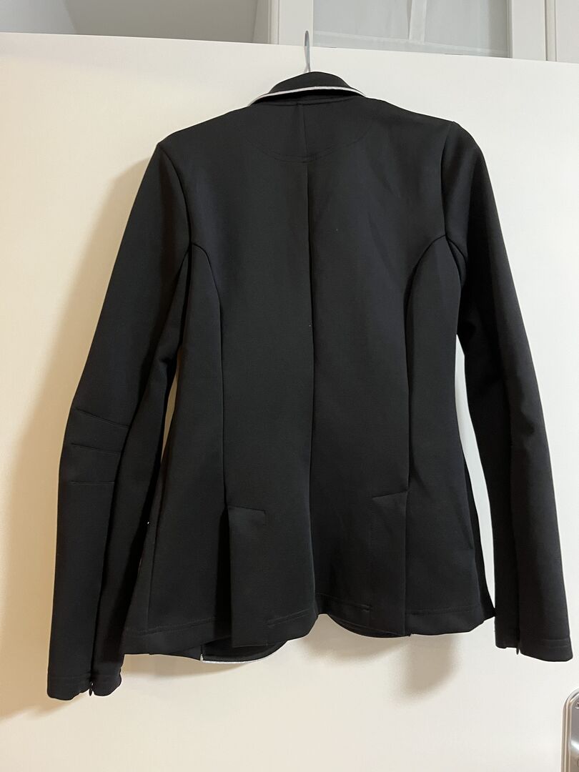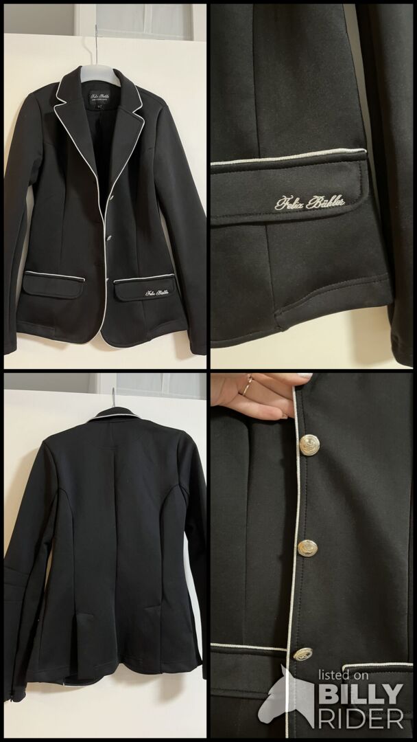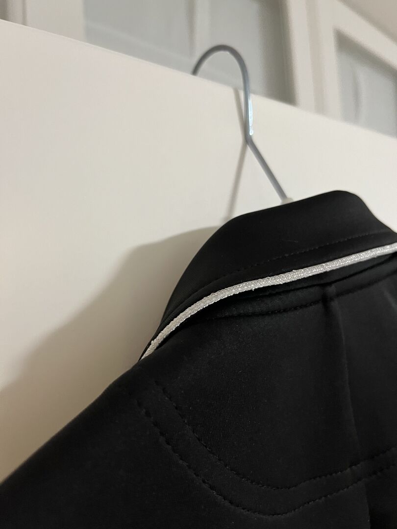 Schwarzes Turnierjacket von Felix Bühler, wenig getragen (Schätzungsweise 8-10 mal). Die dickeren grauen Nähte glitzern und man kann auch etwas kleines in die beiden vorderen Taschen packen. Für mich geht es nicht mehr auf Turniere oder ähnliche Veranstaltungen und ich würde mich freuen, wenn es jemand gebrauchen könnte.