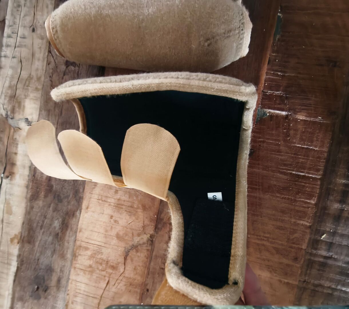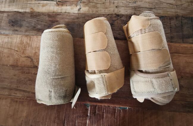 Die beigen Gamaschen sind 2 x Größe S und einmal Größe M