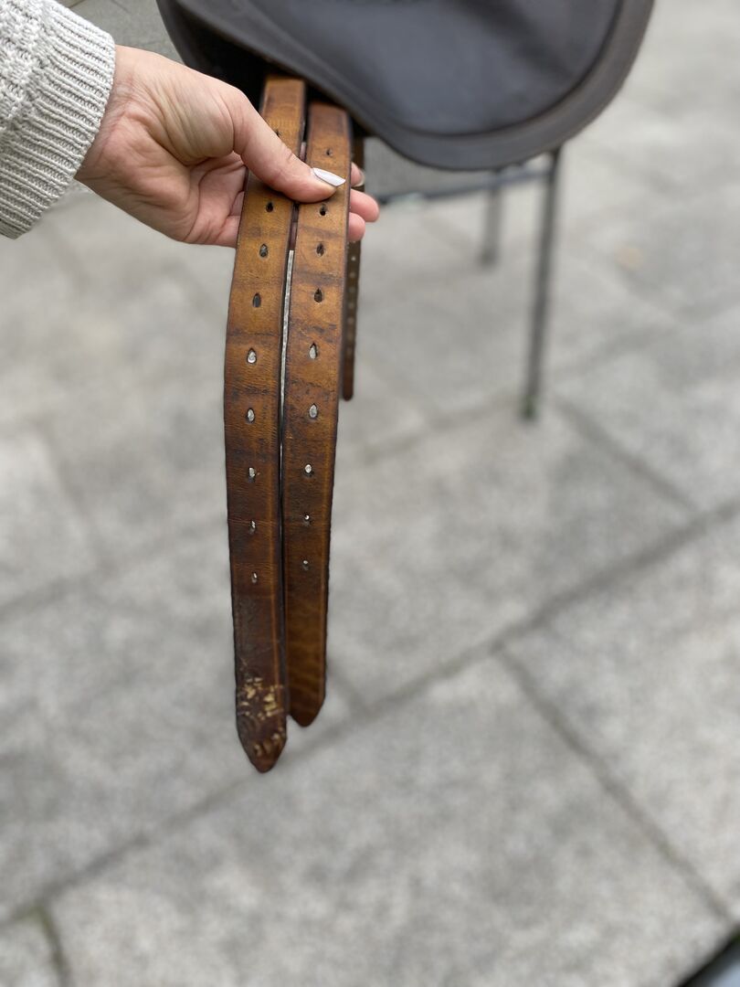 Steigbügel Aufhängung am Sattel. Verstellbare Klettpauschen. Gebrauchsspuren siehe Bilder.