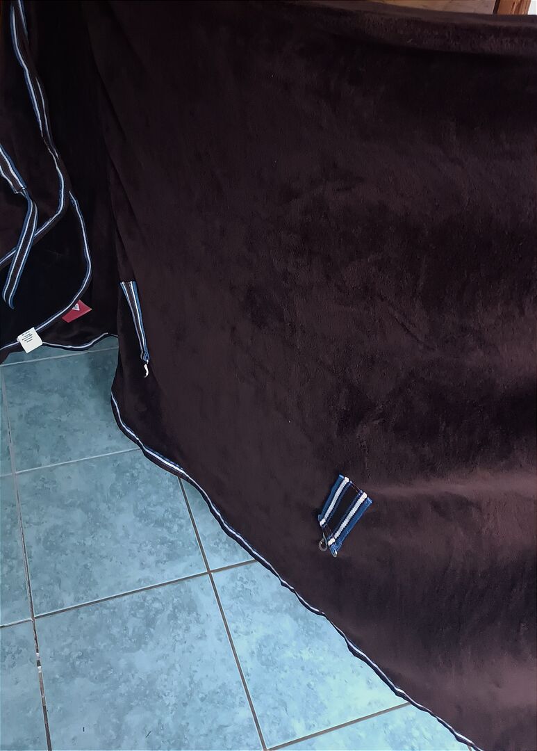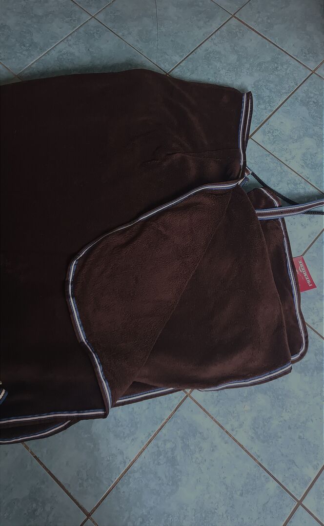 Neue Fleece Abschwitzdecke mit Etikett in der Größe 155cm von Premiere (Special Edition) zu verkaufen. Sie hat unterm Bauch einen Kreuzgurt, ist dunkelbraun und schön weich.