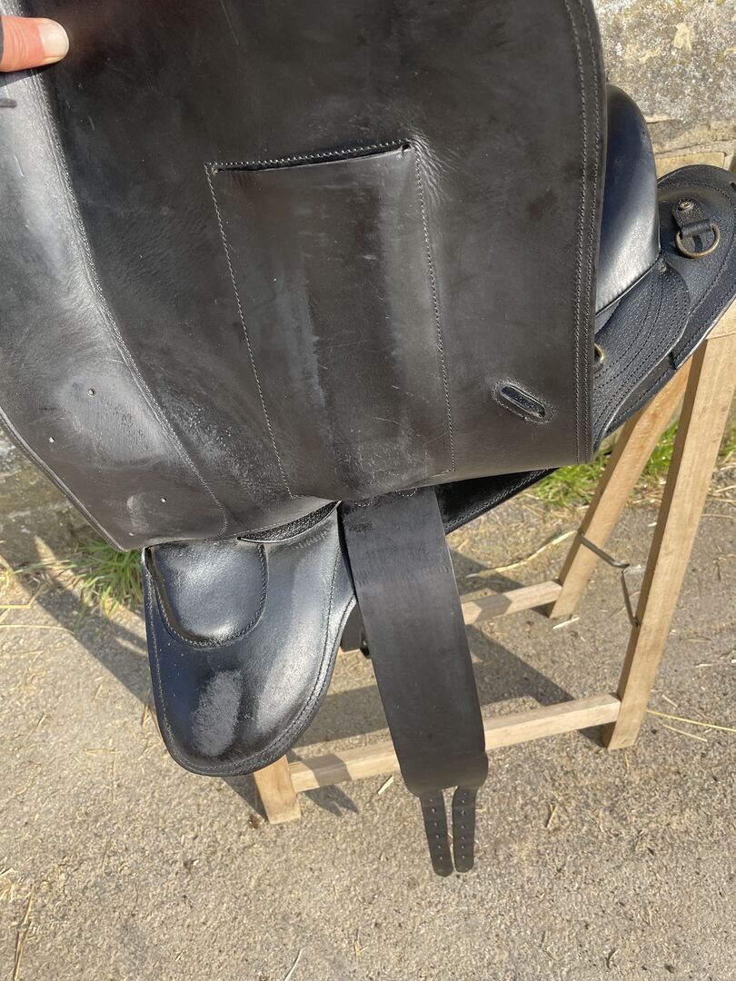Der Sattel ist aus sehr schönem, weichem Leder gefertigt und typisch französisch geschnitten – perfekt für Reiter, die viel Gefühl zum Pferd möchten. Lag auf einem Warmblut.