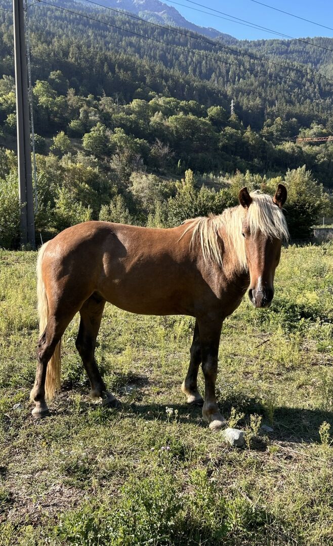 Zum Verkauf steht mein 3-jähriger Freiberger Mix Askari, mit einem derzeitigen Stockmaß von 148 cm. Er ist in einer gemischten Herde aufgewachsen und daher bestens sozialisiert. Askari ist mit dem Anbinden, dem Hufschmied, dem Anhängerfahren, dem Führen, dem Putzen, dem Spazierengehen und spielerischer Bodenarbeit vertraut. Er kennt den Hofbetrieb und ist an Traktoren, Hunde und Kinder gewöhnt. Im Umgang ist er sehr liebenswert, jedoch testet er in seinem Alter gerne Grenzen aus und zeigt sich eher dominant. Er benötigt daher einen konsequenten Menschen, der ihn gerne fördert und weiter zur Reitausbildung vorbereitet. Askari ist sehr neugierig und möchte beschäftigt werden. Er lernt schnell und zeigt zudem eine mutige Einstellung.