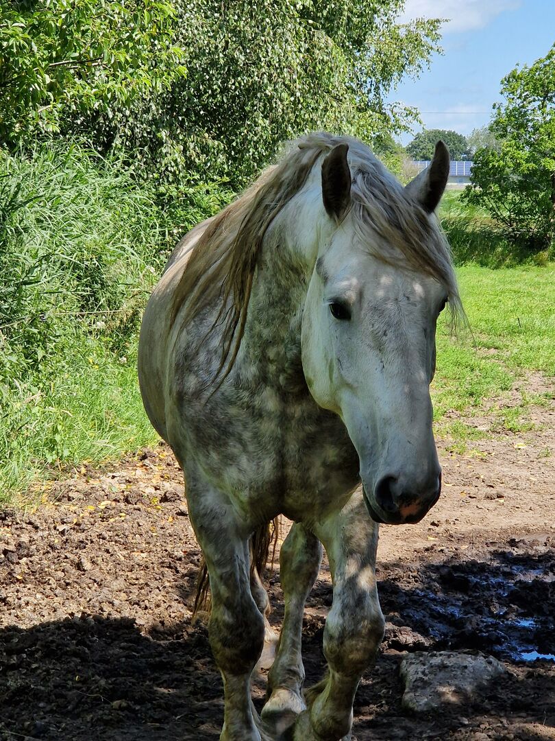 Der Friese im Schimmelmantel! Entstanden aus einer schneeweißen Bolounnais Stute und einem kohlrabenschwarzem Friesen, viel vor 4Jahren dieser wunderschöne weiße Friese..... Unser Hübscher Junge ist nun 4Jahre alt und kann nun in die Ausbildung gehen. Wir haben ihm viel Zeit und Ruhe gelassen um sich zu entwickeln. Aufgewachsen mit einem 2. Hengst dierekt neben der Stutenherde, weiß er sich sehr gut zu benehmen und ist ganz leicht zu handeln. Er mag es, wenn man ehrlich mit ihm ist und verlässlich, dann wirst Du in Ihm den treuesten und hübschesten Freund fürs Leben finden. John wir sich in allen Disziplinen zuhause fühlen und sich für Dich bemühen stets die beste Leistung zu erbringen. Wir planen ihn in ca.3-4 Wochen legen zu lassen. Das wird dann auf den Kaufpreis aufgeschlagen. Es ist möglich ihn im Auftrag als Fahrpferd auszubilden zu lassen. Dies lassen wir immer Henrik Høper aus DK machen, denn seine Fahrpferde werden im 1Spänner eingefahren und nach einer guten soliden Ausbildung bekommt man ein Pferd, das seinen "Job" als Fahrpferd wirklich mag und kann. Diese Ausbildung wird natürlich auf den Verkaufspreis aufgeschlagen. Wenn Sie nun Lust haben John kennenzulernen, melden sie sich.