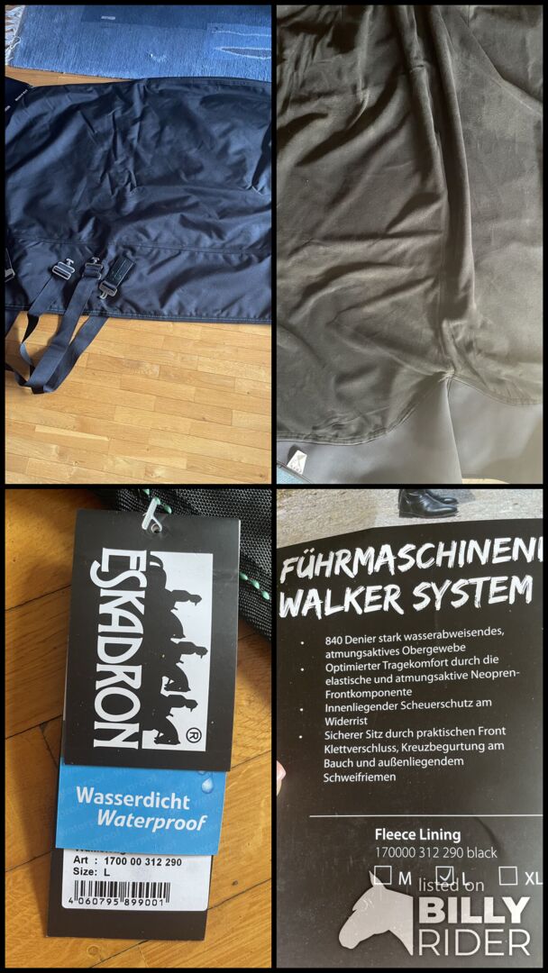 Verkaufe hier eine neue Führmaschinendecke von Eskadron. Preisschild ist noch an der Decke. Sie lag ca 5 min zur Probe im Schritt auf dem Pferd, daher sind innen ein paar Haare dran. Hat eine super Passform ist wasserdicht Ansonsten komplett neuwertig. Sie ist für meine Stute leider zu klein. Privatverkauf Kann gegen Kostenübernahme gerne versendet werden.