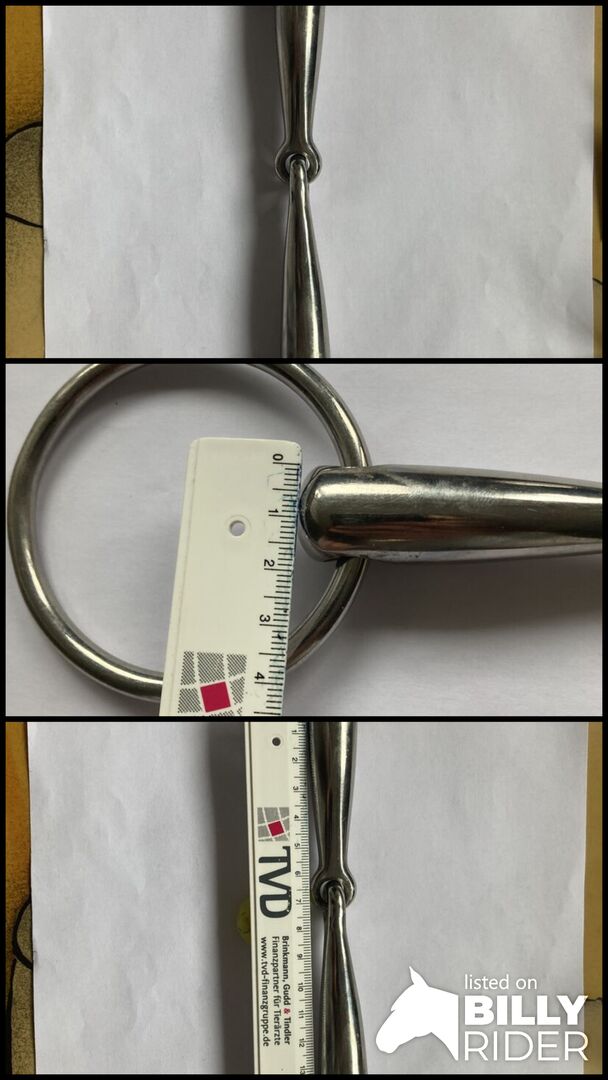 Ich verkaufe hier eine einfach-gebrochene Wassertrense (14,5 cm, 18 mm), nur 2x genutzt da doch zu groß für mein Pony. Zustand daher sehr gut.
