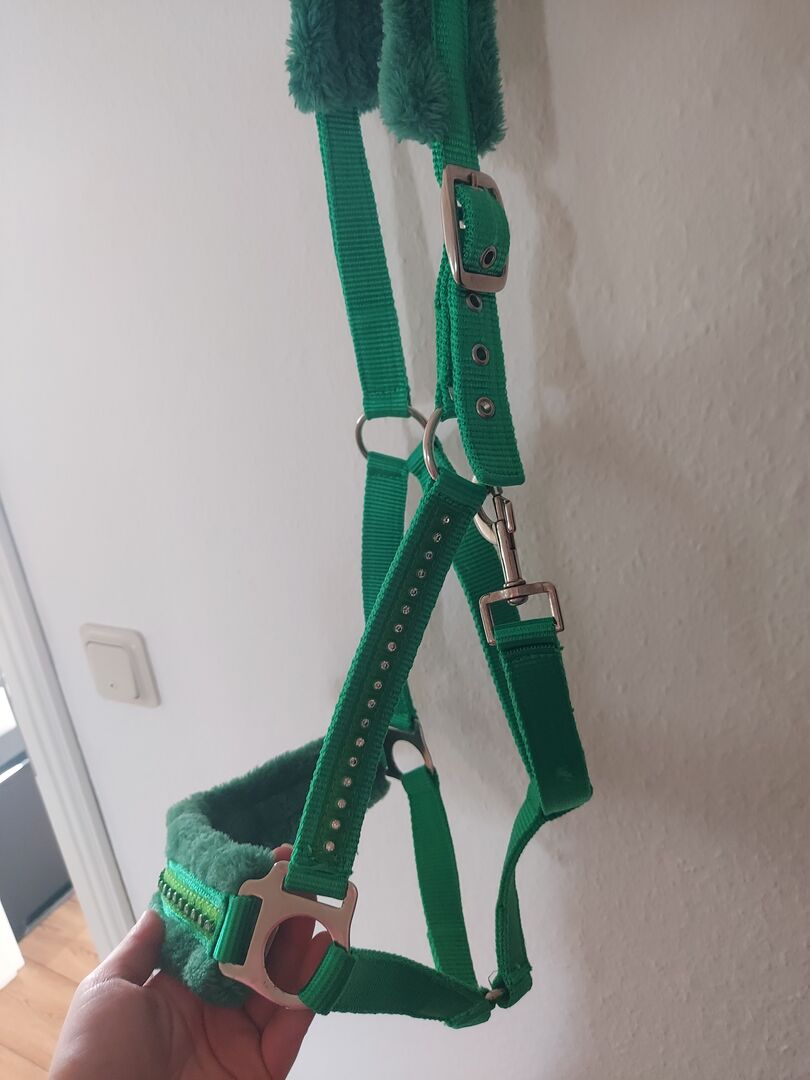 Habe dieses wunderschöne Halfter selbst gebraucht gekauft, aber leider ist es meinem WB/VB Mix zu groß. Es ist frisch gewaschen, sieht aus wie neu und alle Steinchen sind vorhanden.