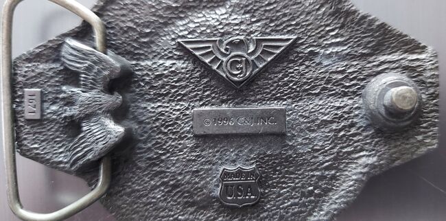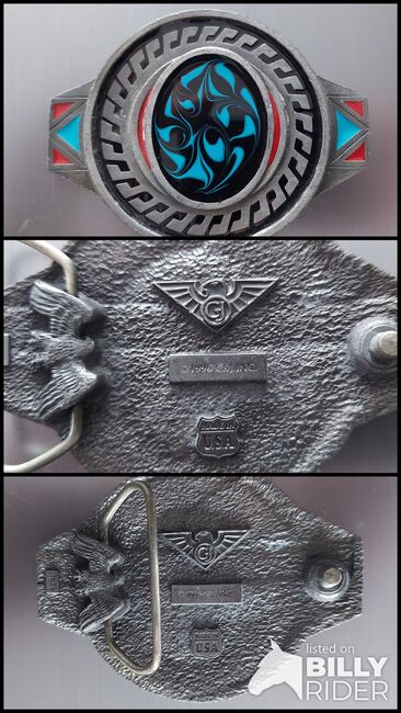 Ich verkaufe ein sehr schönen Buckle der Fa. C & J Inc. Sammlerstück Made in USA 1996 hergestellt. Austauschbar Auch die Rückseite ist sehr schön ;-) Siehe Fotos. Bestens geeignet für Linedance, Westernreiten, Countryveranstaltungen etc Versand gegen Aufpreis. Privatverkauf, keine Garantie, keine Rücknahme.