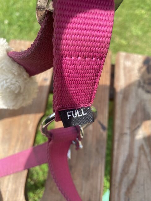 Hey, ich verkaufe diesen Halfterkappzaum in pink. Größe Full. Wenig genutzt. Alles noch heile.