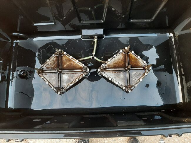 Fassungsvermögen: 20-24 kg Futter, entweder in einem Heunetz oder lose oder ein ganzer Heuballen