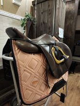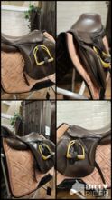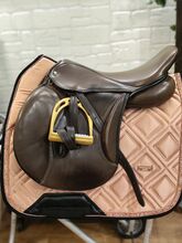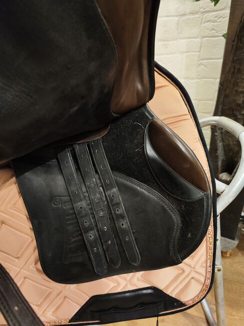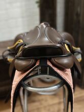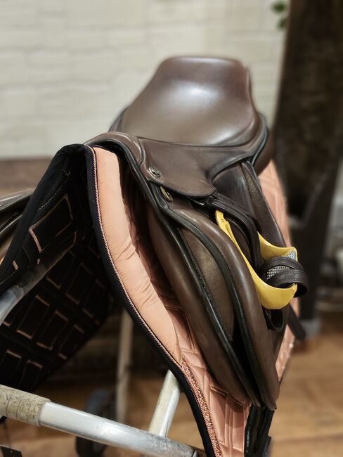 Gefertigt 2013 als Mustersattel, 2017 ausgeliefert, seither wenige Male in Benutzung. Die Abnutzungsspuren lassen sich bei braunem Leder leider nicht vermeiden.