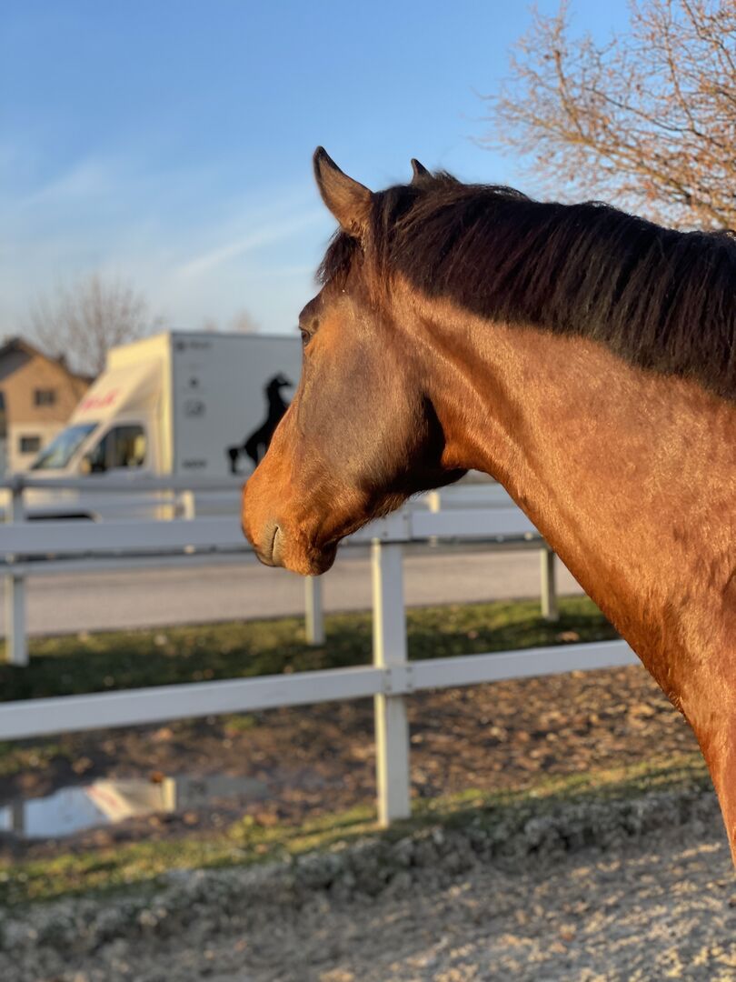 Mir ist sehr wichtig zu betonen, dass ich ihn nicht als reines Sportpferd sehe. Sein Wohl steht für mich an erster Stelle – deshalb gebe ich ihn weit unter seinem eigentlichen Wert ab. Er hat mit 2,5 Jahren bereits 17.500 € gekostet, was er auch definitiv wert ist, doch Geld spielt hier eine untergeordnete Rolle.