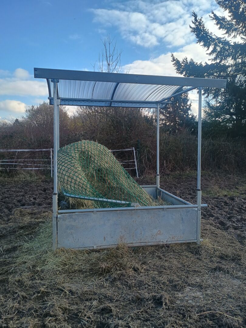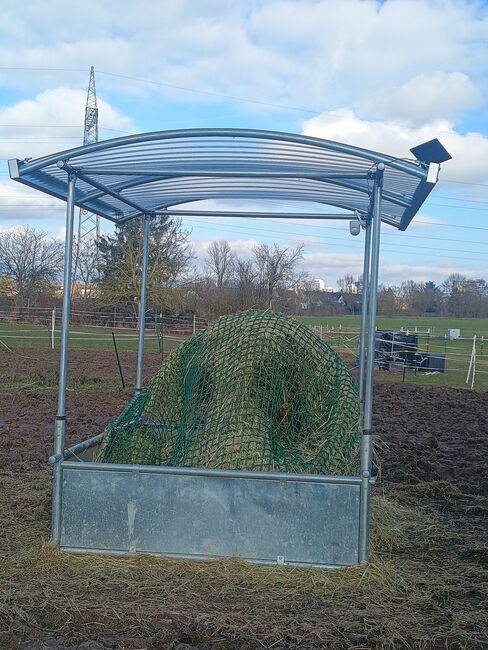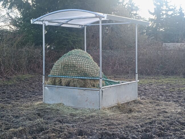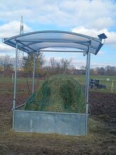 Ich biete eine hochwertige Heuraufe mit Dach an, die erst 6 Monate alt ist und sich in einem nahezu neuwertigen Zustand befindet. Sie weist lediglich leichte, übliche Gebrauchsspuren auf.