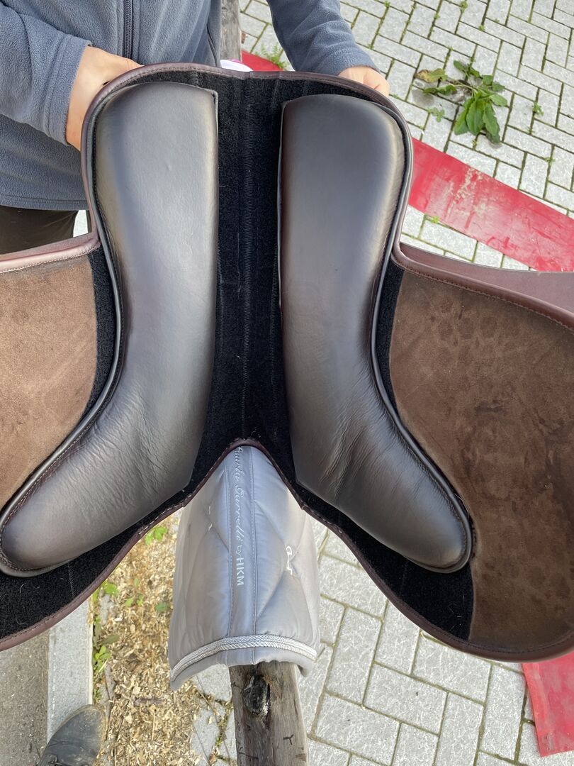 Der Sattel hat Klettkissen in 42cm drunter, diese können bei Bedarf durch längere oder kürzere ausgetauscht werden.