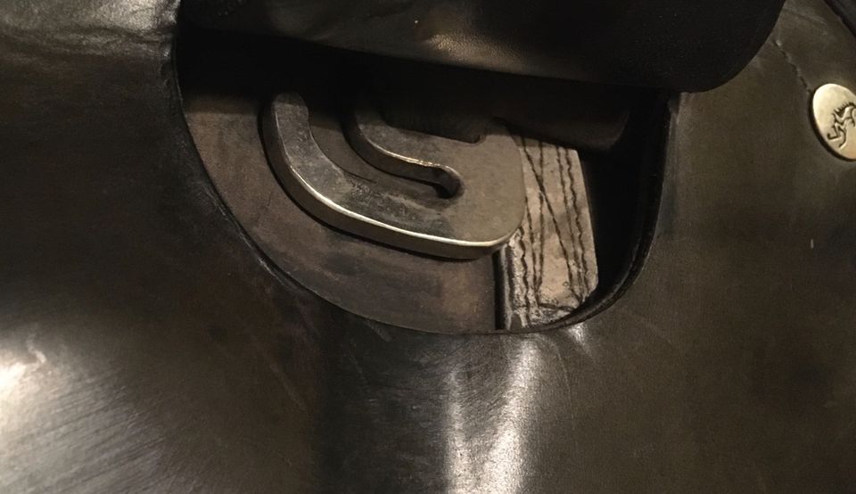 Hidalgo Relvas mit Lederbaum, 18 Zoll, flacher Sitz, gebraucht, aber gut erhalten und voll funktionsfähig, mit barocken chromfarbenen Beschlägen, zwei Vorderzeugringe pro Seite. Dieser Sattel hat kein Kopfeisen, somit kann er sich an sehr viele Pferde anpassen, und er wird mit Klettkissen geritten. Die Klettkissen auf dem Foto sind Dressurkissen, filzverstärkt, und haben eine Länge von ca. 44cm und eine Dicke von vorne nach hinten abflachend verlaufend 4cm-3cm-3cm. Zur Auswahl hätte ich ebenfalls noch einen Satz Dressurkissen filzverstärkt durchgehend 4cm dick, ebenfalls ca. 44cm lang und einmal einen Satz Dressurkissen filzverstärkt durchgehend 3cm dick und 46cm lang. Die filzverstärkte Variante ist sowohl langlebiger als auch bei etwas mehr Reitergewicht zu empfehlen. Alle Kissen sind vorne an der Schulter abgeflacht. Es könnten bei diesem Sattel auch spanische Klettkissen verwendet werden. Der Sattel in diesem Angebot kommt mit EINEM Satz Kissen nach Wahl. Die 44er mit 4cm Dicke wurden nie geritten, die 46er sehr wenig, die 44er 4-3-3 am meisten, aber auch diese sind durch die Filzverstärkung noch sehr gut in Schuss/NICHT durchgesessen. Das dicke Wachsleder ist regenunempfindlich und wurde immer mit entsprechendem Pflegemittel behandelt, dementsprechend ist es geschmeidig. Der Sattel hat Gebrauchsspuren, da er gerne geritten wurde, siehe Fotos, lag auf einer rundrippigen Connemara-Stute.