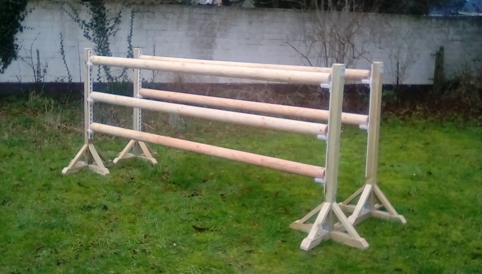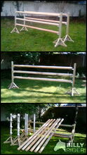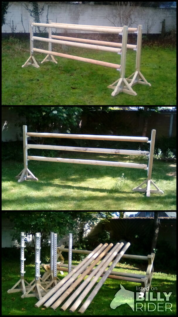Super Sprung Set....bestehend aus 6 Leichten Holzständern ca. 1.45m in Natur ...3 x Cavaletti ca.2.90m Natur ....6 Stangen ca. 3 m Natur und 12 Auflagen alles Neu !!