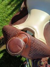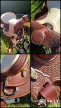 Der Sattel ist wunderbar gearbeitet und verziert. Das cremefarbene Leder macht ihn zu etwas besonderem.