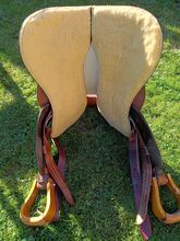 Lag vielleicht 10 Mal auf einem Pferd, darum ist der Zustand auch sehr gut. Gebrauchsspuren finden sich eigentlich nur auf den Steigbügeln.