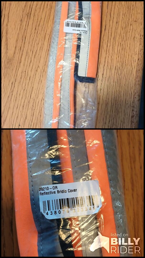 Reflektierender Zaumzeugüberzug aus gut sichtbarem Neopren. Einfache Handhabung. 4-teiliges Set, nie benutzt.
