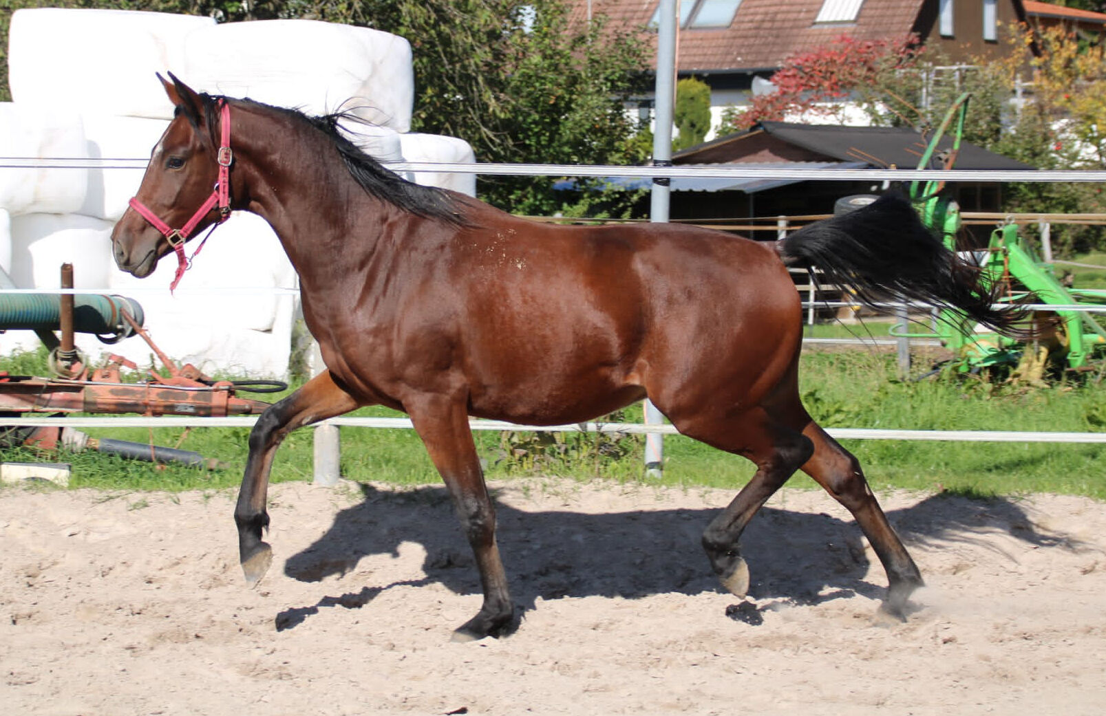 3-jähriger Sohn des international bis GP erfolgreichen, Weltmeisterschafts Teilnehmers Topas von Totilas. Dieser Youngster überzeugt mit 3 sehr guten Grundgangarten, wie einem schwungvollen Trab und einer raumgreifenden Galoppade. Auch beim Freispringen zeigt er einen guten Sprungablauf. Aufgrund des Alters noch roh direkt vom Züchter.