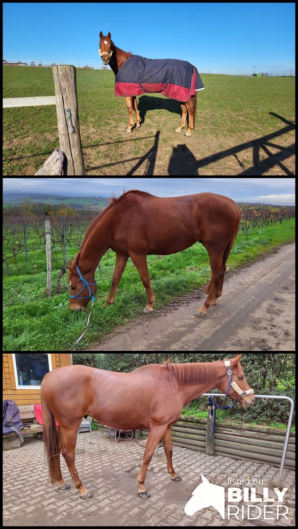 - Er ist ca. 1,75 groß, aber blütertypisch schmal gebaut . Daher können auch Jugendliche oder kleine Erwachsene ihn gut abdecken. - ist im renntrainung gewesen und ein Rennen gelaufen. (beim Züchter) - ich habe ihn als angeritten gekauft (vor 2 Jahren) aufgrund fehlender Zeit (habe einen kleinen Sohn) ist er bisher überwiegend vom Boden gearbeitet. Er ist aber auch in allen grundgangarten auf dem Platz und im Gelände zu reiten. - er ist rangniedrig und braucht viel raufutter. - er kommt mit allen Pferden zurecht, solange er nicht gejangt etc wird. Da wird er panisch. - Krank war er bisher nie, allerdings hat er Allergiebedingtes Headshaking. Das hat sich diesen Sommer entwickelt. Je nach Pollenflug ist es stark oder eben gar nicht da. - im Umgang wirklich sehr sehr brav sowohl beim Schmied als auch beim verladen. - Er ist voll geimpft sowohl Herpes als auch Influenza, Zähne sind geraspelt und Hufe werden alle 4 Wochen gemacht ( er benötigt vorn Eisen da er zu flache trachten hat)