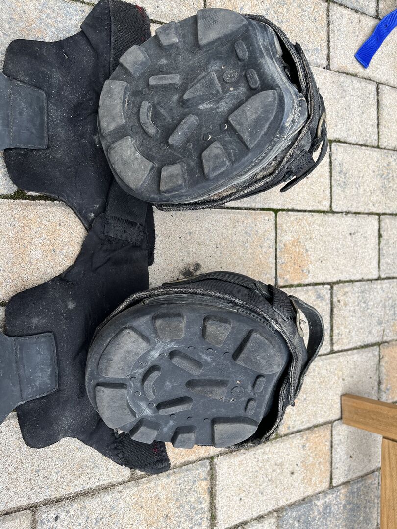 Verkaufe ältere Hufschuhe. Sie lagen jetzt einige Jahre im Keller und sollen nun ausziehen. Sie gehörten einem schweren Warmblut mit entsprechend großen Hufen. Die Abnutzung der Sohle ist auf den Fotos zu sehen. Bei Interesse messe ich die Schuhe gerne nochmal genau und schicke sie.