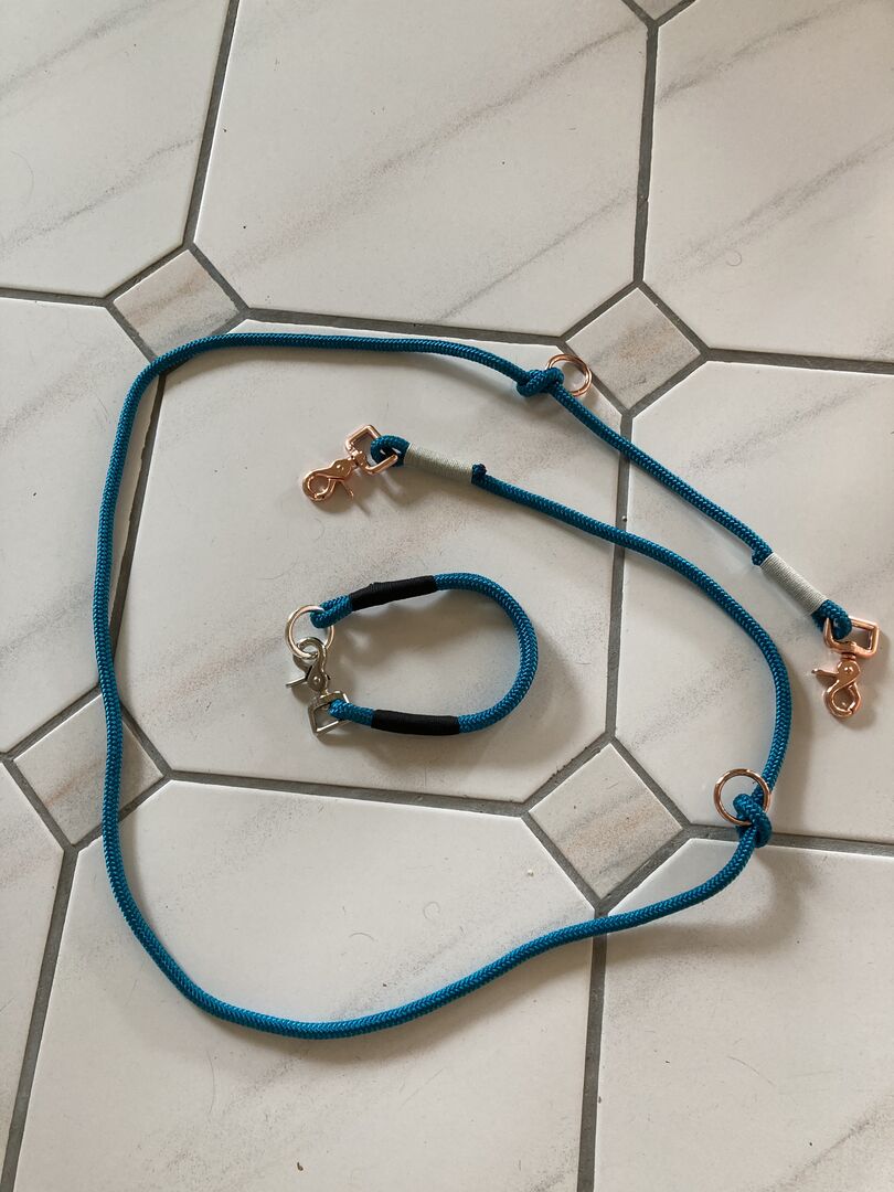 Biete selbstgemachte Hundehalsbänder und - leinen an, teils sind die Verschlüsse silber teils roségold auch einzeln zu haben, im set jedoch günstiger. Auch schön als Geschenk! Länge jeweils nach Bild. Immer zuerst die Leine dann das Halsband.