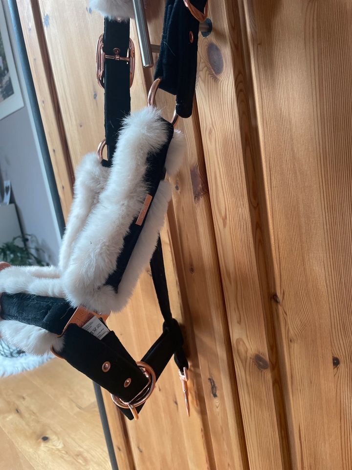 Biete neues Halfter der Firma HV Polo. Lag nur zur Anprobe am Pferd, ansonsten hing es im Keller. Daher sind auch keinerlei Gebrauchsspuren zu finden. Ist an Genick, Nase und Seiten mit Teddyfell gepolstert, welches super angenehm weich ist.