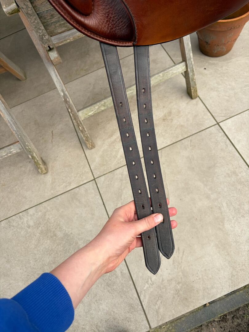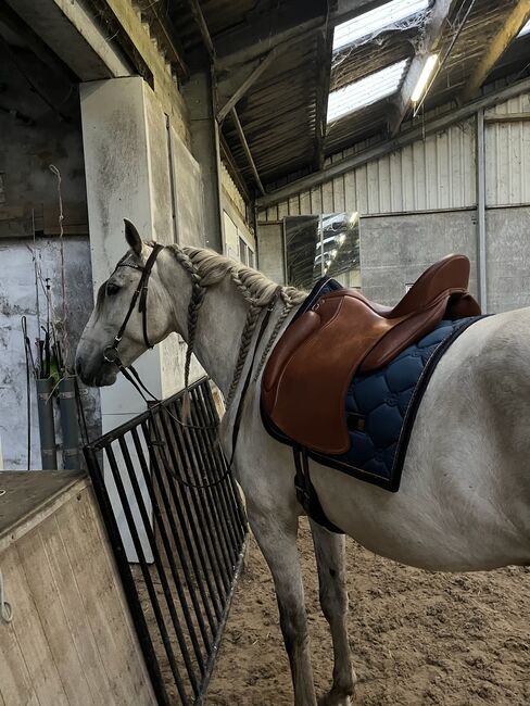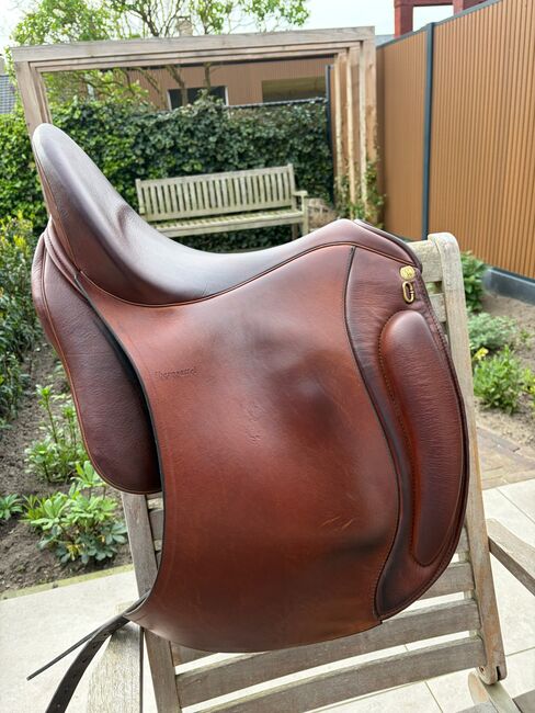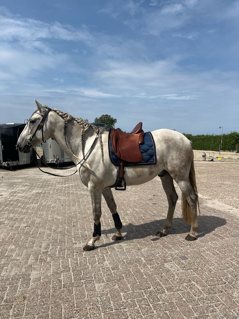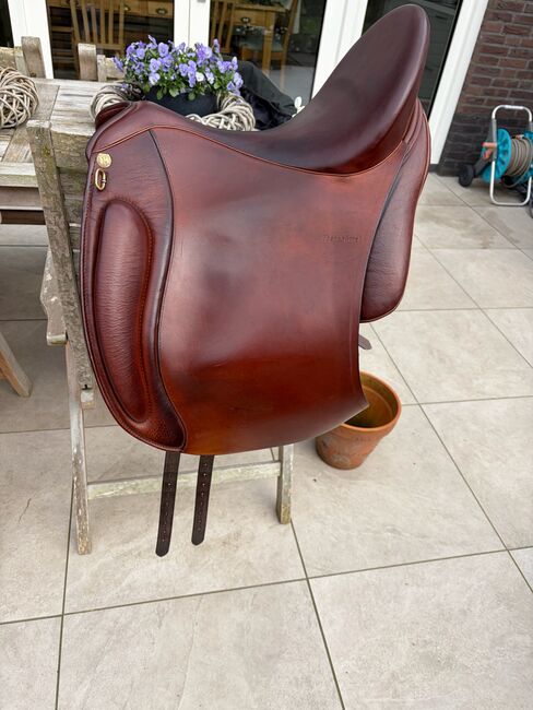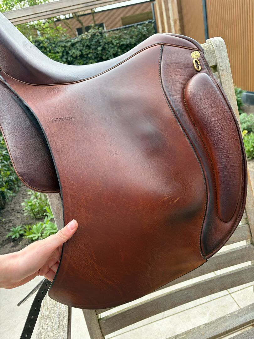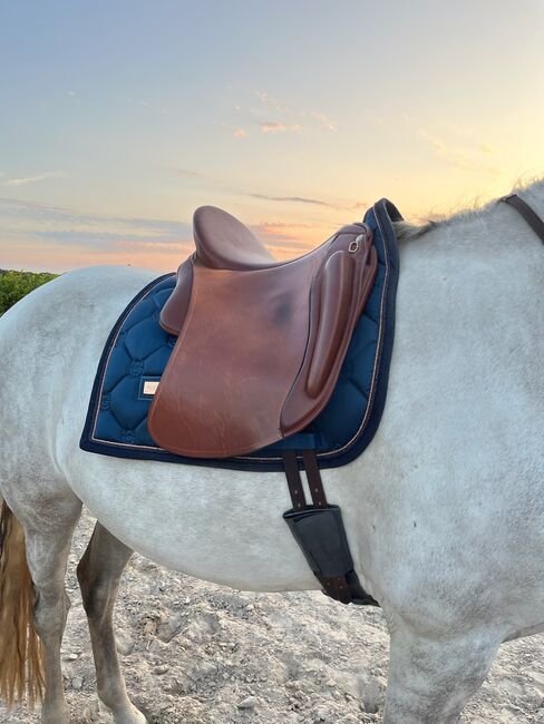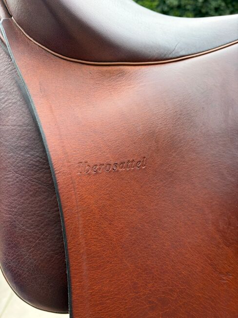 Iberosattel Amazona Dressage Comfort 3000 – Premium-Linie - Hiermit verkaufe ich meinen Dressursattel, ich habe ihn 1 Jahr lang geritten. Danach haben wir mit dem Springen angefangen und seither hängt er im Schrank, was ich sehr schade finde. Es ist ein sehr bequemer Sattel, weil er einen weichen und tiefen Sitz hat. Außerdem hat der Sattel vorne ovale Bananenknie. Der Sattel hat kurze und u-förmige Kissen für eine optimale Druckverteilung für Pferde mit kurzem Rücken. Durch die einzelnen Schweißblätter haben Sie außerdem ein enges Kontaktgefühl. Der Sattel ist perfekt für Dressur, Working Equitation oder einen schönen Waldausritt, da er viel Komfort für Pferd und Reiter bietet!