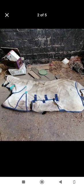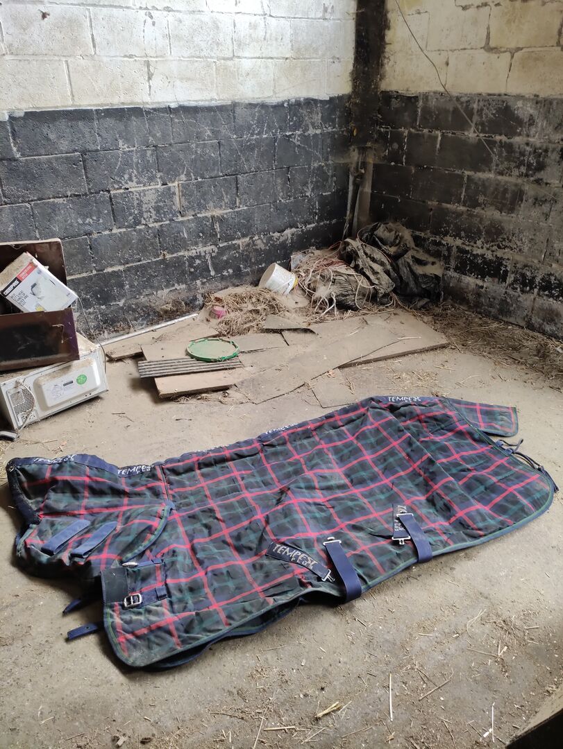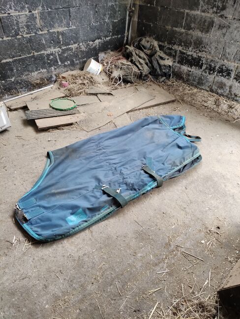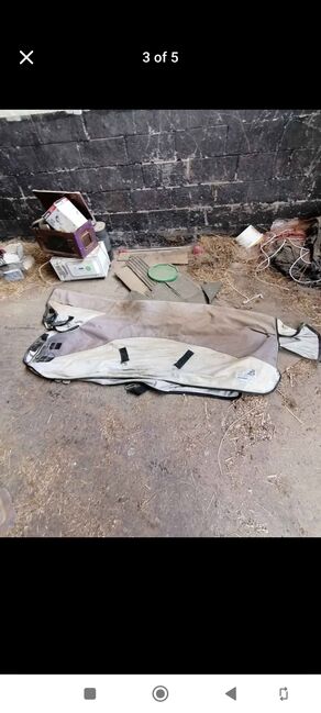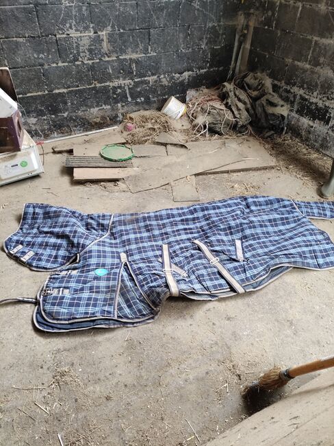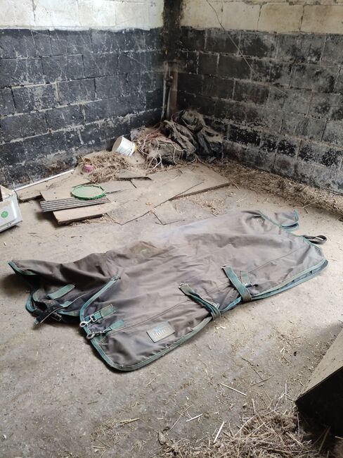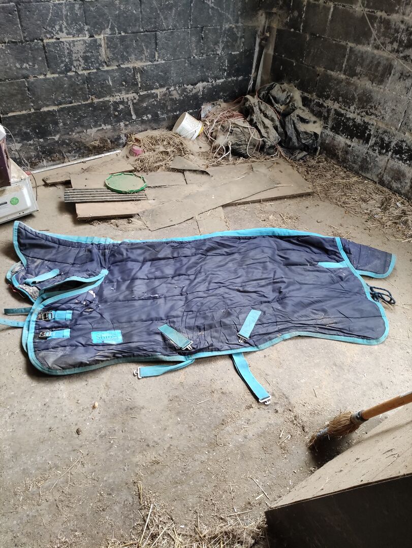 Ein Joblot von 10 5'3"/5'6" Stall/Wechseldecken Ekzemerdecken, Fliegenstiefel, Krippenkragen, Gebisse, Gurte, Schulausrüstung, Bremsgeschirr, Ariat Landstiefel, Reisestiefel, Eventstiefel, Anti-Gitter mit Füllung und Halterungen. bitte siehe Bilder