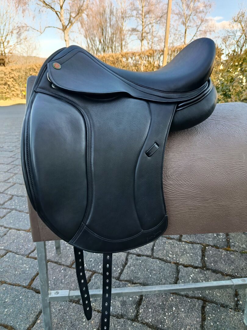 Jorge Canaves, Dressursattel P3, Einzelanfertigung , Filzkissen. Wegen Sortiment wechseln zu verkaufen. Vorführsattel, max.2 x probiert Kammer: 34, unverstellt Größe: 18 Zoll Vollschale, kalt verstellbar bis 5 KW Baum flexibel UKE= Weit-Kopf- Eisen Gerader Baum für Pferde mit wenig Schwung, breite Schulter und Rumpf. Klettpausche. Sonderanfertigung: Filz Kissen, viel Wirbelkanal und kurze Auflage. Kroko Spiegel. Sitz: Halbtief, Efter hoch. Doubliertes Sattelblatt. Extrem bequemer Sattel, gut anpassbar, der auch optisch keine Wünsche offen lässt. Moderner Sattel für Reiter die gerne eingerahmt sitzen möchten. Sattel kann gegen volle Bezahlung 5 Tage probiert werden, bei Rücksendung dürfen keine weiteren Gebrauchsspuren entstehen. Es darf im Rahmen eines Proberittes getestet werden, gerne komme ich mit dem Sattel im Rahmen einer Sattelprobe, auch mit unterschiedlichen Sätteln, im Umkreis von 100 km ab 53783 zu euch. Der Sattel hat volle Garantie und 1 Jahr Gewährleistung NP 2765,-