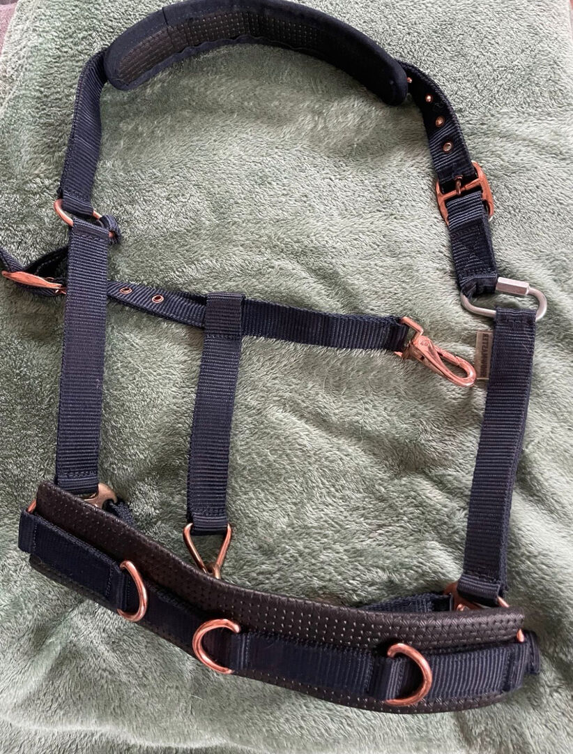 Hallo, biete hier meinen kaum genutzten Kappzaum an. Dieser ist in der Größe Full, in Dunkelblau/Roségold. Er wurde beim mir kaum genutzt und hing nur im Schrank rum. Kam bei mir schon kaputt an. Wir haben ihn repariert und man kommt mit dieser Technik gut durch das longieren oder sonstiges. Bei Fragen gerne einfach anschreiben. Versand möglich allerdings nur gegen volle Kostenübernahme des Käufers! Da Privatverkauf keine Garantie oder Rücknahme!