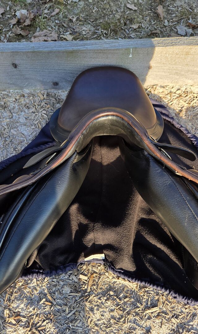 Der Sattel war nur als Zweitsattel im Einsatz und ist seit 3 Jahren in meinem Besitz. Er weist minimale, normale Gebrauchsspuren auf, wurde immer trocken und warm gelagert sowie halbjährlich von der Sattlerin kontrolliert und regelmäßig aufgepolstert. Zuletzt wurde im Dezember 2025 eine zusätzliche Vorgurtstrupfe angebracht.