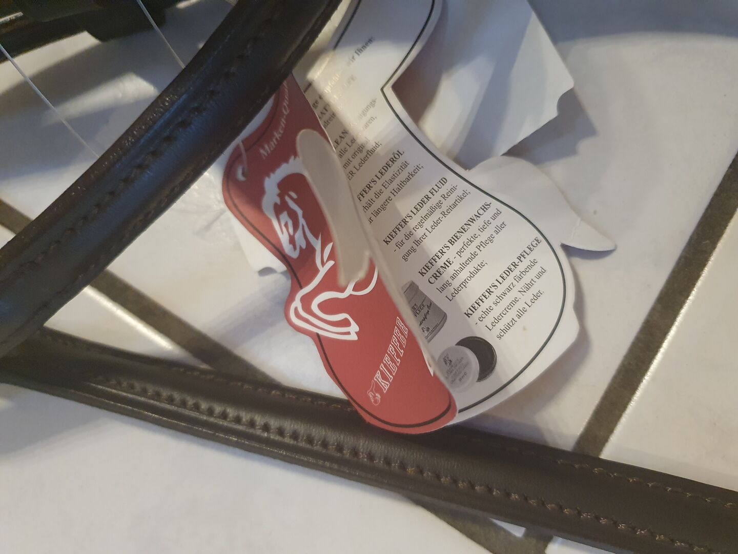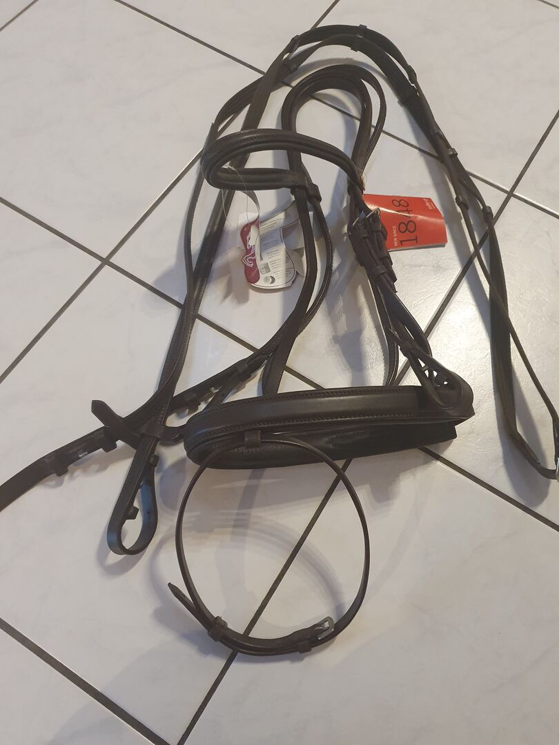 Biete eine unbenutzte dunkelbraune Trense von Kieffer, die teils bombiert ist.Sie hat ein geteiltes Genickstück und das Gebiss wird mit Zaumhaken eingeschnallt. Ich habe sie gekauft, "für gut" aufbewahrt und habe nun einen schwarzen Sattel....