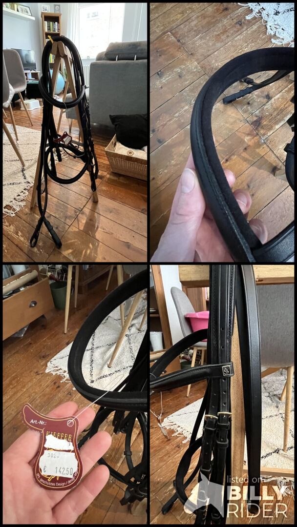 Ich verkaufe einen neuen Kandarrenzaum der Firma Kieffer, Gr. WB in schwarz. Er hat goldene Beschläge und 2 Paar Lederzügel. Stirnriemen, Nasenriemen und Genickstück sind weich unterlegt, Ton in Ton schwarz. Das Leder ist weich und in gewohnt guter Kiefferqualität. Der Zaum war noch nie am Pferd. (Gebisse sind nicht dabei) NP 142,50 € ich verkaufe sie für 100€ plus Versand oder Abholung.