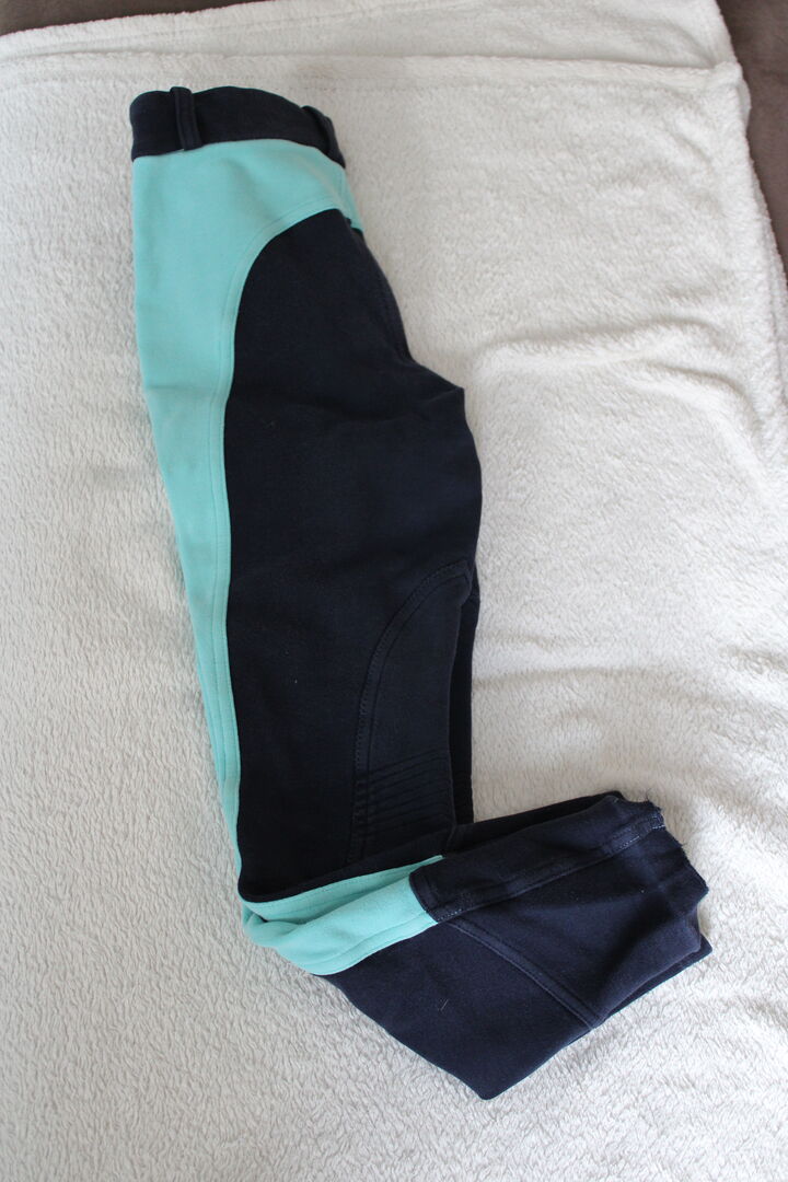 Ich biete hier: Eine Reithose der Firma DECATLON, hier ist eine Naht am unteren Hosenbein offen, stört die Funktion nicht. Verstellbar im Bund mit Eingriffstaschen und Schiebeknopf sowie passendem Poloshirt mit Knopfleiste. Leichte Tragespuren vorhanden. Siehe bitte Bilder.