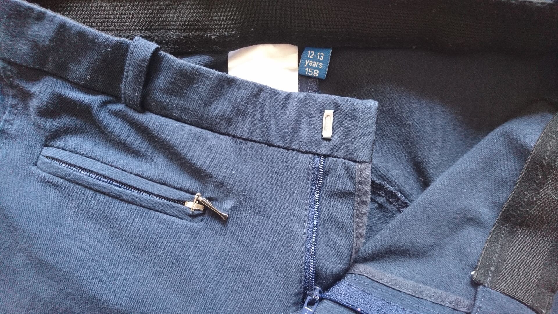 Leider müssen wir schweren Herzen und aus gesundheitlichen Gründen unser Hobby aufgeben. Daher bieten wir hier eine kaum getragene, dunkelblaue Kinderreithose in der Größe 158 an. Sie stammt aus dem Hause Equiva. Vorne hat sie eine kleine Tasche. Vollbesatz ist unbeschädigt. Sie ist sehr bequem und angenehm zu Tragen. Es sind auch keine Löcher, Flecken oder andere Beschädigungen vorhanden.