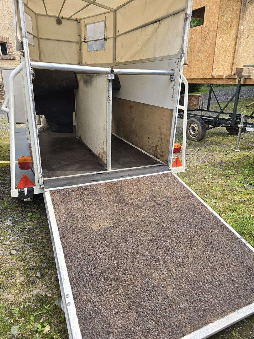 Kleinpferdeanhänger der Firma Rettenmaier. Geringes Eigengewicht (420Kg). Zulässiges Gesamtgewicht 1600 Kg. Mit Alu-Rahmengestell (lackiert) und Seitenwänden aus Sandwich/Alu 25mm stark. Planengestell auch Alu. Holzboden, Siebdruckplatte neu. Gummimatten. Technisch einwandfrei. Bj 1995