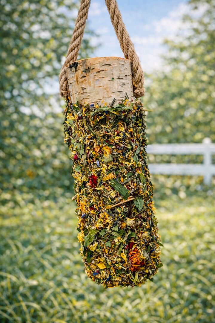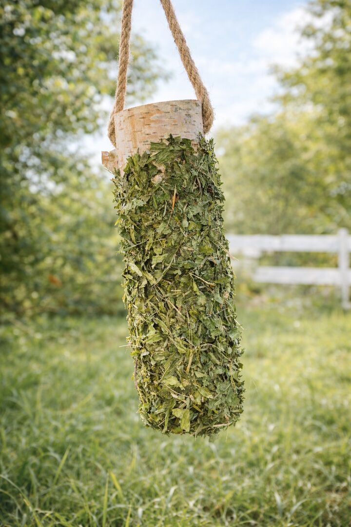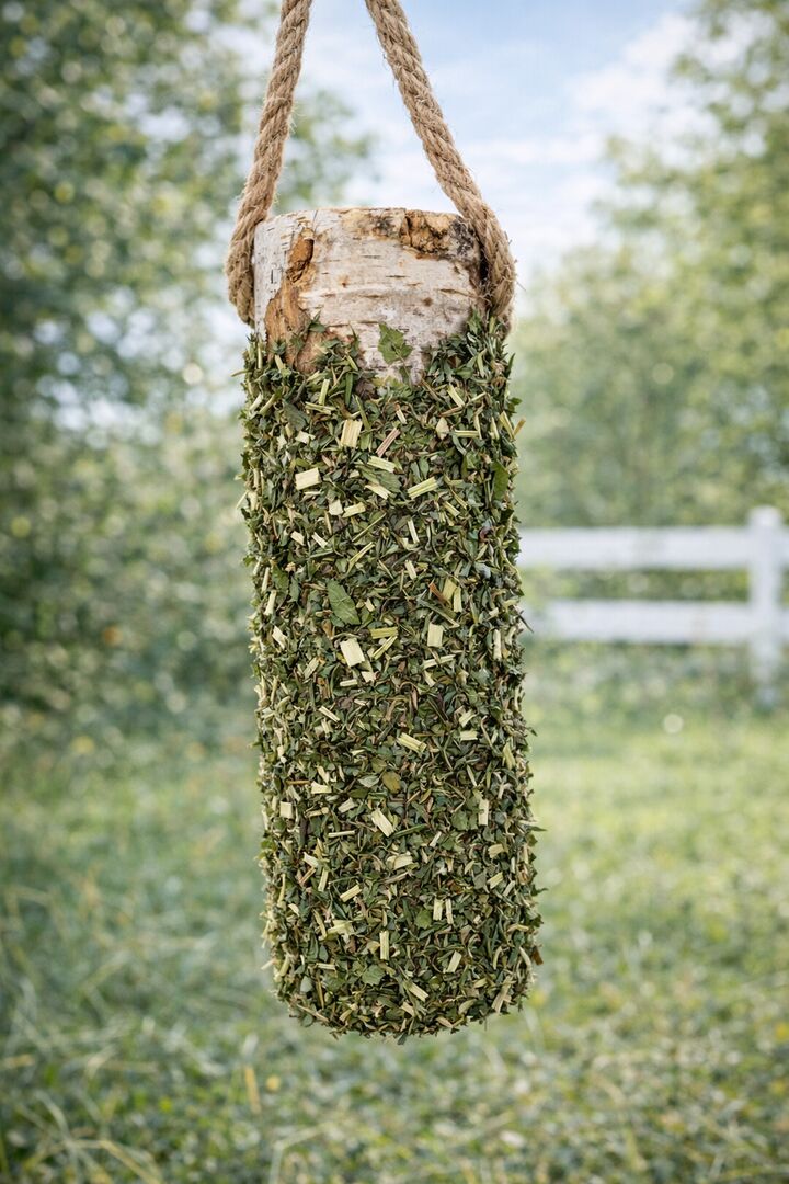 Handgemachtes Knabberholz für Pferde – Birke mit Kräutern