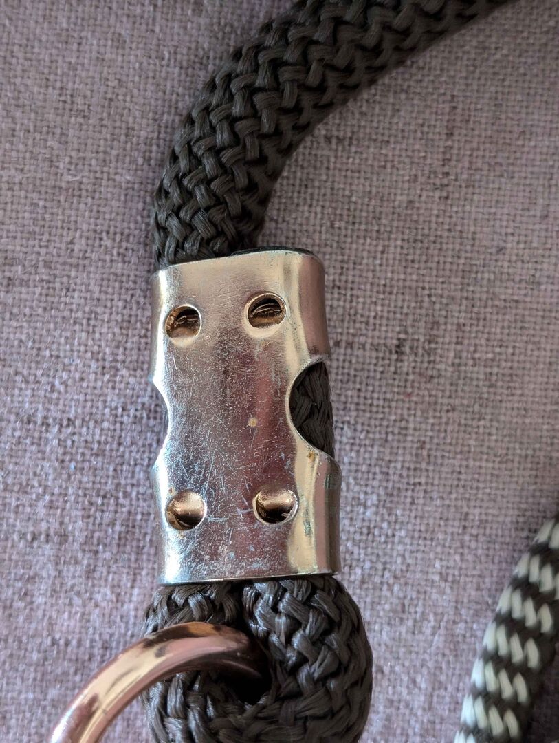 Knotenhalfter und Strick in braun. Das Knotenhalfter ist individuell einstellbar und der Strick ist extralang. Gehören ursprünglich nicht zusammen, brauche beides jedoch nicht und verkaufe sie deswegen zusammen. Der Strick hat einen Rosé Karabiner und ein schwarzes Endstück. Beides in sehr gutem Zustand.
