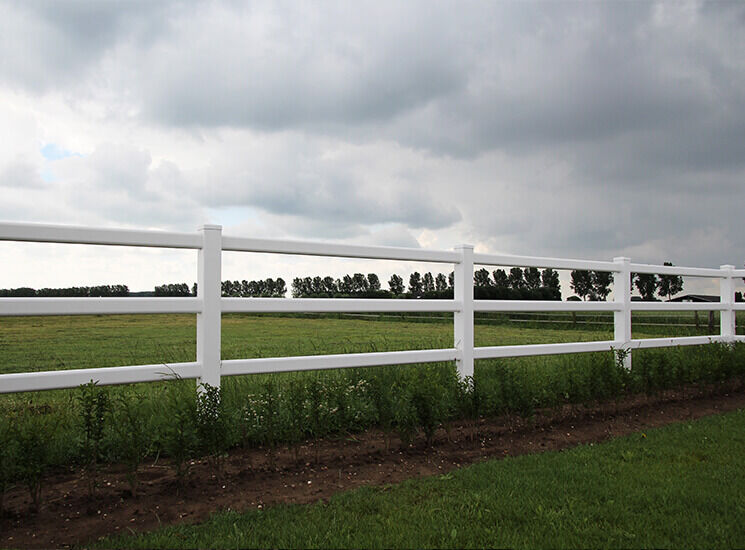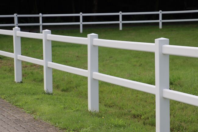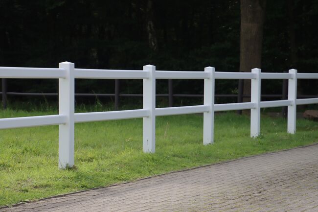 Der Kunststoff Zaun eignet sich hervorragend für Gartenanlagen, Pferdekoppeln, Reitplätze oder Paddocks. Passende Tore sind ebenfalls verfügbar.